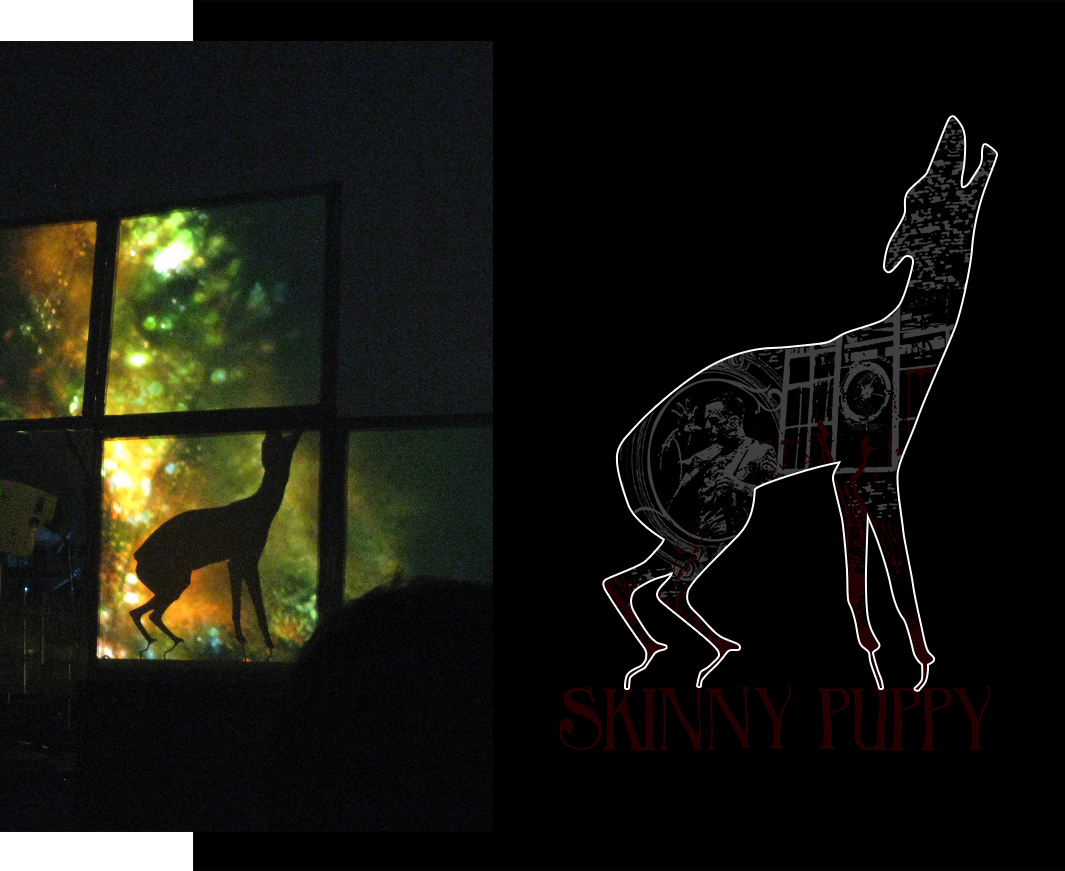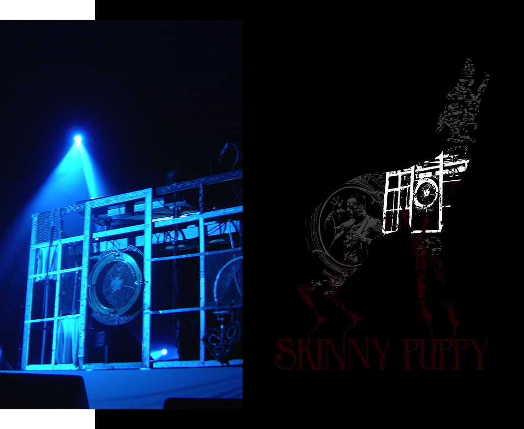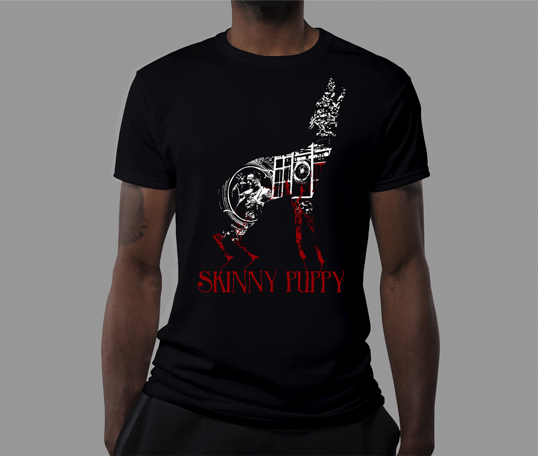 Shirt design for the band Skinny Puppy, an experimental industrial rock band. A fan contest was held and my design was chosen by the band as one of the top three finalists. The design approach was from my unique fan perspective, using elements consistent in their live performances such as the blood and dog prop, and imagery from photographs I took of the many shows I have attended over the years.